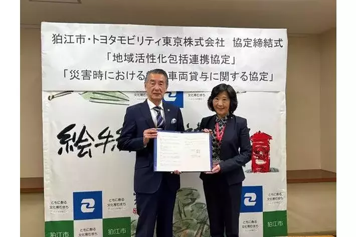 トヨタモビリティ東京株式会社 (社長 佐藤康彦)は、11 月 7 日(水)、狛江市(松原俊雄 市長)と地域活性化包括連携協定及び災害時給電車両貸与に関する協定を締結した。