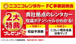 今ならFC事業説明会参加で2大特典をプレゼント!ぜひご参加ください!・自動車関連業で多事業展開をご検討中の方