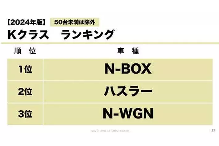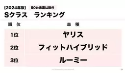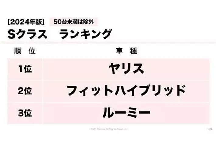 その中からSクラス(コンパクトカー)・Kクラス(軽自動車)の上位3車種を公表します。