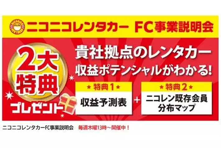 ニコニコレンタカーはレンタカービジネスのフランチャイズ本部として「人気車種ランキング」をはじめ、レンタカーの最新情報やFC加盟店様を応援する施策を都度発信しており、お客様そして加盟店1店1店に寄り添った運営を推進して参ります。