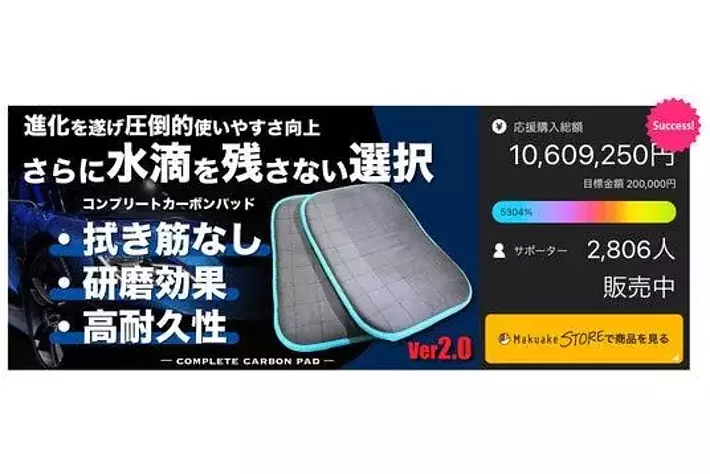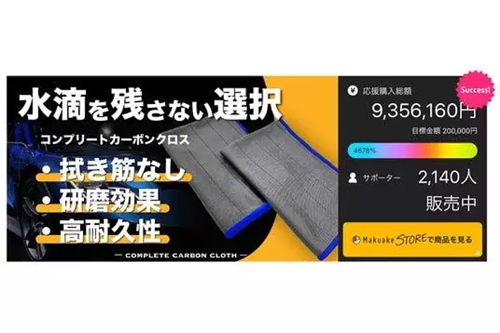 拭き残しゼロ!新発想の「カーボンBLOCK」が驚異のクリア仕上げを実現~クラウドファンディングで目標達成率4248%、累計支援額850万円突破~