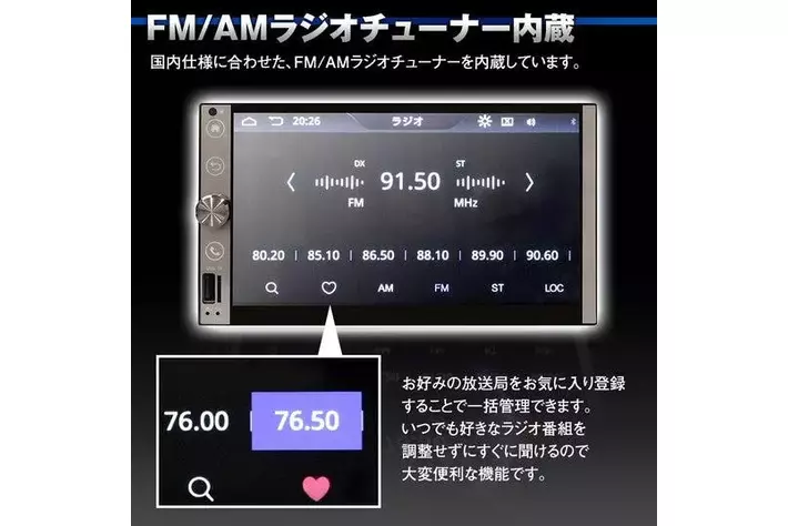 ワイドFM対応のFM/AMラジオチューナーを内蔵しています。お好みの放送局をお気に入り登録することで一括管理できます。いつでも好きなラジオ番組を調整せずにすぐに聞けるので大変便利な機能です。