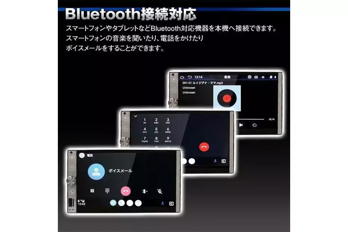 スマートフォンやタブレットなどBluetooth対応機器を本機へ接続できます。 スマートフォンの音楽を聞いたり、電話をかけたりボイスメールをすることができます。
