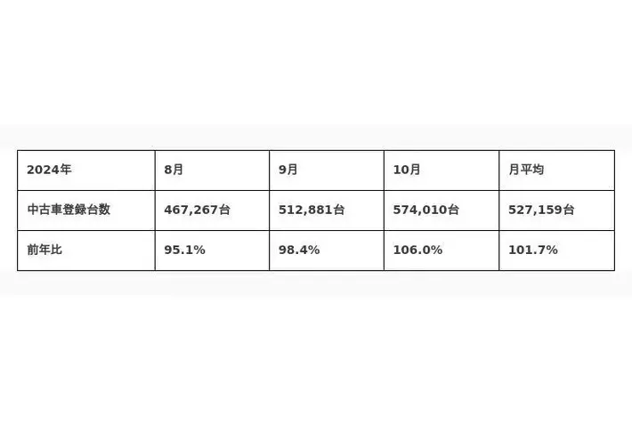 【中古車市場統計レポート(2024年10月)】より抜粋してご案内いたします。