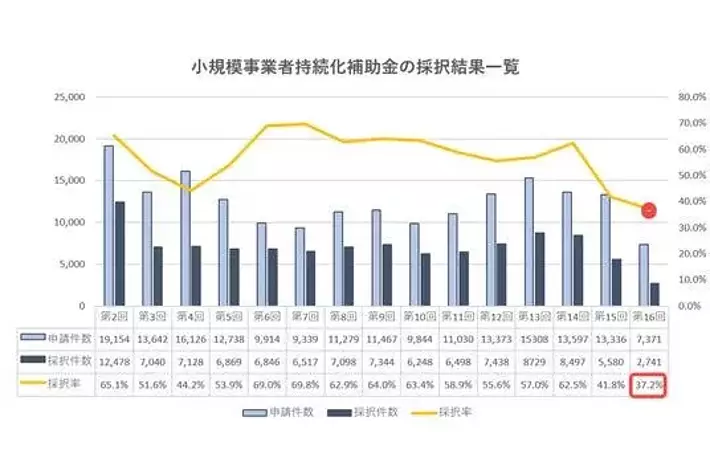 2024年第16回までの小規模事業者持続化補助金採択結果