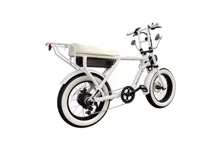 NEW MAKAMI AYA WHITEは、マットホワイトカラーのNEW MAKAMIをベースに、シルバーのミラークランプと同じくシルバーのMODSミラーや、ホワイトカラーのシンセティックレザーダブルシートや本革のレザーグリップ、ドリンクホルダー、アウターワイヤー、ホワイトリボンタイヤに加え、ホワイト塗装を施したリアキャリアを装備しています。