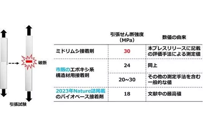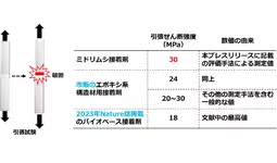 (20~30 MPa)に匹敵し、2023年9月にNature誌で発表されたバイオベース接着剤の接着力(18
