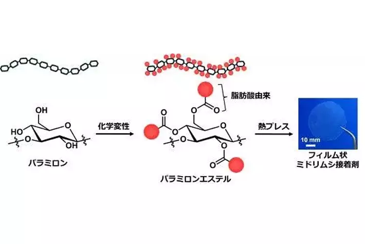 図2 ミドリムシ接着剤原料の化学構造とフィルム状接着剤の外観