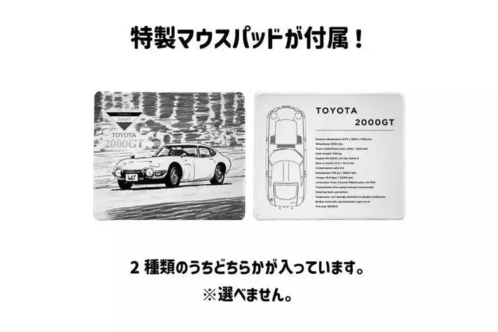 生産数は2000個限定。2000GTの世界観を更に楽しめるマウスパッドは2種類のうちいずれか1枚がパッケージに入ります。