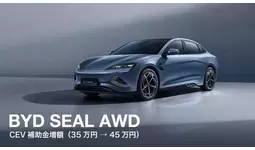 BYD Auto Japan株式会社(本社:神奈川県横浜市、代表取締役社長:東福寺 厚樹、略称:BAJ)が、国内で販売するフラッグシップモデル、「BYD SEAL」の四輪駆動仕様「BYD SEAL AWD」に適用されるCEV補助金が、従来の35万円から45万円※2に増額されました。