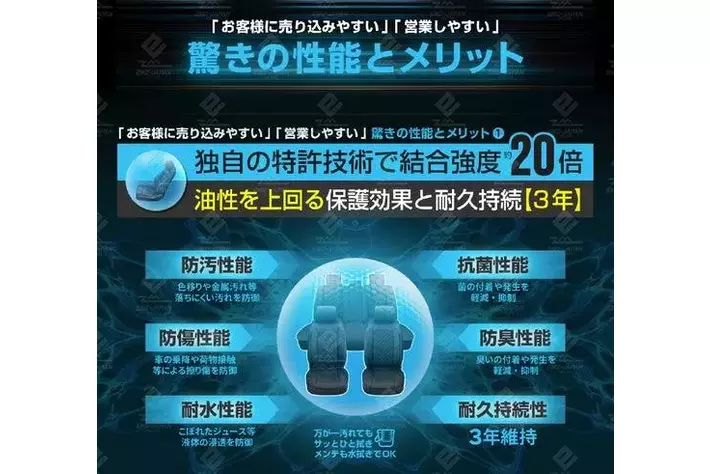 【自動車業界】水溶性シートコーティング 販売代理店と施工店の募集。長年の研究成果を結集した商品です。汚れを防ぐ新しいコーティング剤の提供を開始します。