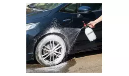 本製品は、傷がつきにくい人気の泡洗車を、より多くの方に手軽に楽しんでいただけるように、品質とコストパフォーマンスにこだわりました。上部のノズルをポンピングすることで容器内を蓄圧し、モコモコの泡を広角に噴射します。きめ細かな泡が汚れにしっかりと密着し、汚れを浮かせて落とします。