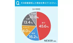 45.6%の方が「旅行」で長距離運転した、と回答しています。