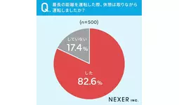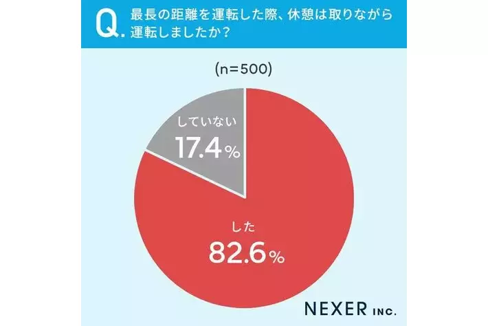 82.6%と8割以上の方が最長の距離を運転した際、休憩を取りながら運転していたと回答しています。