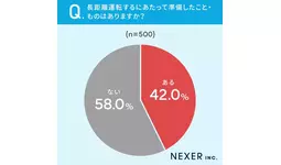 42%の方が、長距離運転するにあたって準備したこと・ものが「ある」と回答しています。
