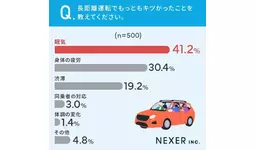■長距離運転でもっともキツかったこと、41.2%が「眠気」