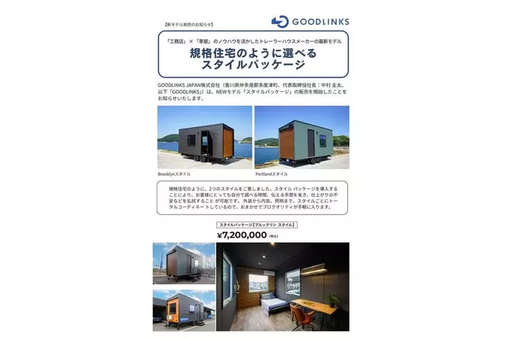 GOODLINKS JAPAN株式会社(香川県仲多度郡多度津町、代表取締役社長:中村 圭太、以下「GOODLINKS」)は、NEWモデル「スタイルパッケージ」の販売を開始したことをお知らせいたします。