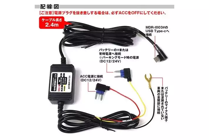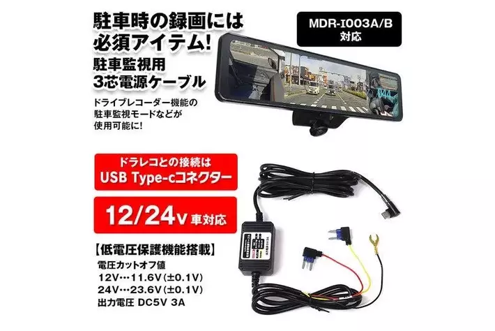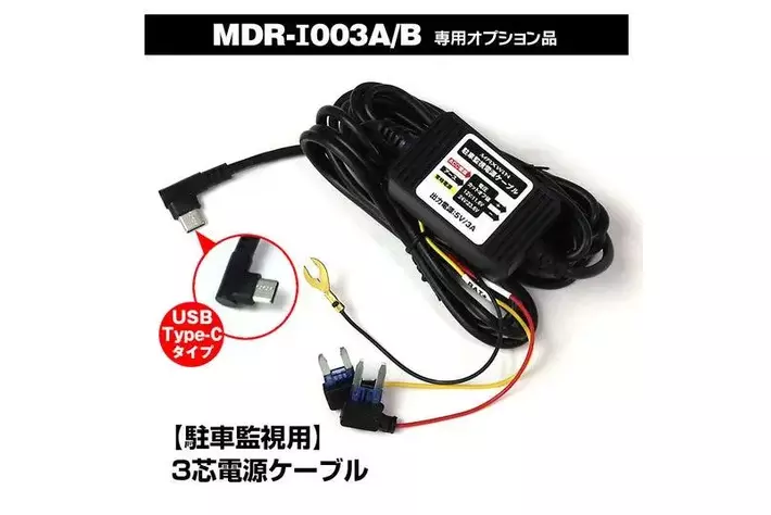 MDR-I003A/MDR-I003Bミラー型ドライブレコーダーの専用駐車監視ケーブル