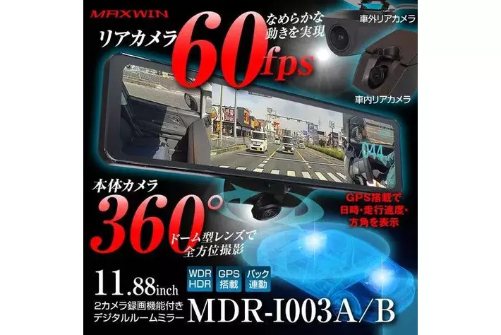 360°カメラ搭載リアカメラ60fpsデジタルインナーミラー『MDR-I003』