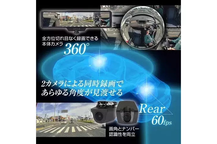 全方位切れ目なく録画できる360度カメラ搭載デジタルルームミラー『MDR-I003』