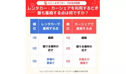 両サービスに共通して「価格」が最も重要な要素として挙げられました。また借りる場所の近さも重要で、価格と時間のコストをおさえられる点はどちらのサービスでも支持されるポイントになっています。