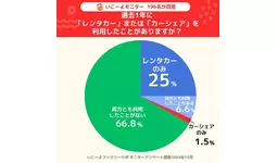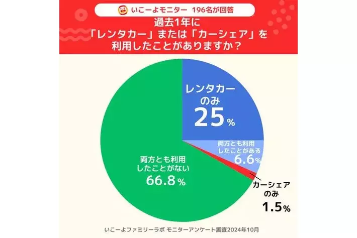 調査では、過去1年以内に「レンタカーのみを利用した」家庭が25%、「レンタカーとカーシェアの両方を利用した」家庭が6.6%。合計で約31.6%がレンタカーを利用していました。