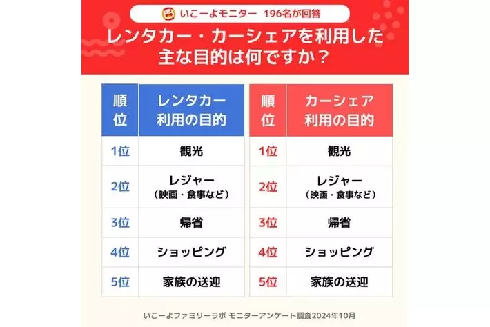 【年末旅行直前】「レンタカーVSカーシェア」ママ・パパが選ぶ意外な実態!/いこーよファミリーラボ調査
