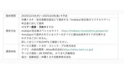 『OTOMO-NAVI』は、沖縄トヨタならびに一般社団法人宮古島観光協会(沖縄県宮古島市、会長:吉井 良介、以下「宮古島観光協会」)と連携し提供される、mobipa!宮古島オリジナルツアー「地域の暮らしと交差する旅」*の対象ツアーにお申し込みいただいた方にご提供いたします。