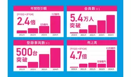 CarstayのこれまでのGMV(年間取引額)、会員数、登録車両台数、売上高