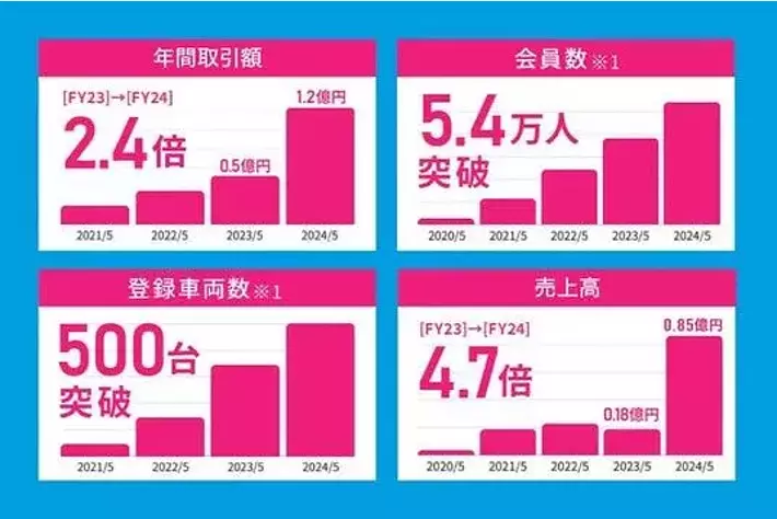 Carstayの主力事業であるキャンピングカーのカーシェアは、堅調に拡大を続けており、2024年5月期(2023年6月1日~2024年5月31日)の売上高は、前年期比472%増の8,600万円に達し、2月には創業以来初の単月黒字化も達成しました。カーシェアと、遊休地を車中泊スポット化するスペースシェア登録者と、利用者/ゲスト会員数は、143%増の約5万人になりました。