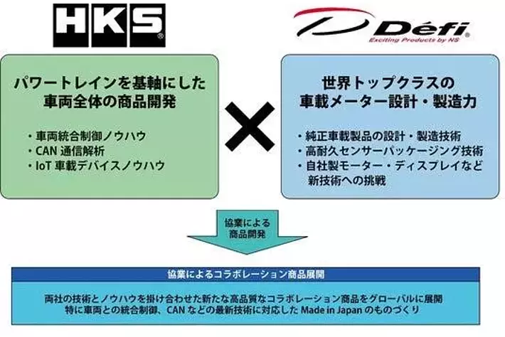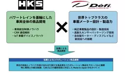 今回の協業により、お互いの電子商品開発分野でこれまで培ってきたノウハウや高品質のモノづくりを生かした新たな市場価値を生み出す商品開発が可能となり、またHKSは車両の各種制御に関しての知見を生かした電子商品開発、またDefiはメーター分野での高品質なモノづくりや自動車メーカー向けの各種ノウハウを生かした商品開発といった、お互いの強みを生かした各種事業展開が可能となります。