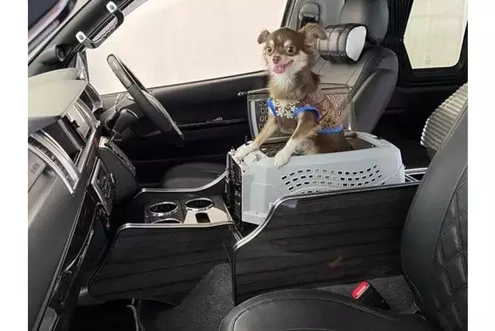 『LEGANCE』が作成したDOGコンソールは、「わんちゃんと一緒にドライブがしたい」を実現させるために、わんちゃんが乗り込めるスペースを作ってドリンクや携帯を置けるようにしたセンターコンソールBOXです。さらなにリードを固定する金具やペットキャリーを入れることができるのも人気の秘訣です。
