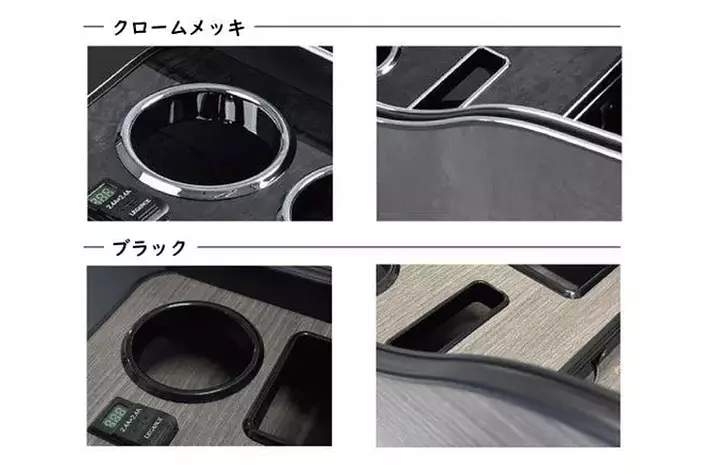 2024年12月23日よりDOGコンソールをはじめとする車の中に取り付ける『インテリアパーツ』の「モール」の色やドリンクを置くホルダー部分の色をブラックもしくはクロームメッキより選べるようになります。