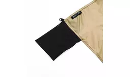 収納袋は紛失を防止できるよう、レジャーシートに縫いつけています。ストレッチメッシュ素材のため、通気性がよく収納がしやすいです。