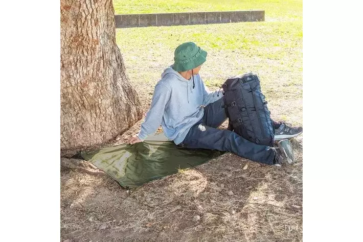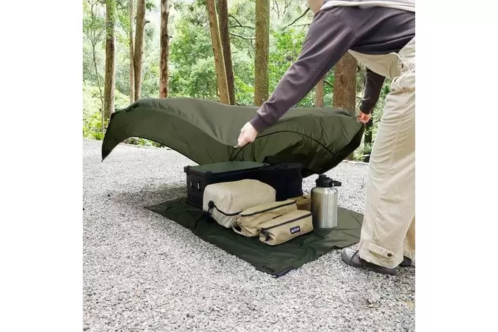 テントや寝袋に使用されている、軽くて引き裂き強度の高い「リップストップナイロン」を使用しています。耐水圧1,000mm、シートの裏面にPUコーティングを施しており、水や汚れに強いです。