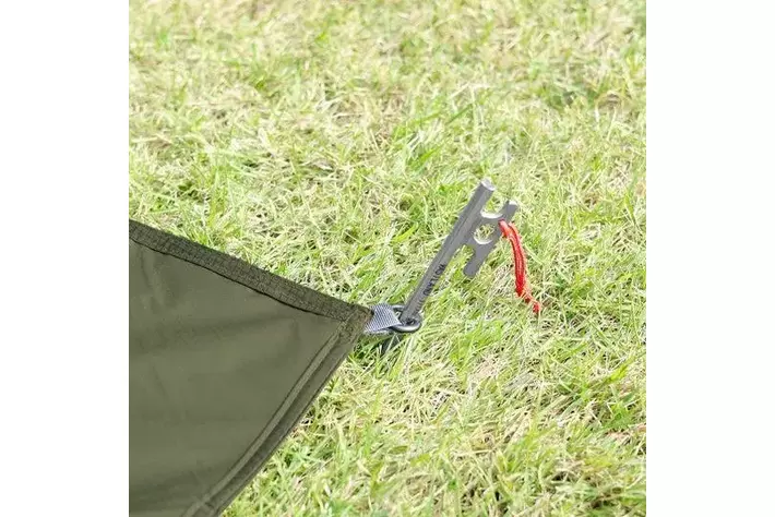 ▶本体に付属している簡易ペグを地面にさして