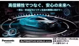 パナソニック インダストリー株式会社(以下、当社)は、2025年1月22日(水)から1月24日(金)まで東京ビッグサイトにて開催される、「AUTOMOTIVE WORLD 2025」に出展します。同展示会は、カーボンニュートラル、電子化・電動化、自動運転、コネクティッドカー、軽量化など、クルマの先端テーマの最新技術が一堂に出展される自動車業界に特化した国際的な展示会です。