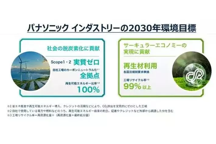 当社は、「パナソニック インダストリー環境ビジョン( https://www.panasonic.com/jp/industry/csr/environment/vision.html )」の実現に向け、サプライチェーンの脱炭素化、製品を通じた脱炭素化、サーキュラーエコノミーへの貢献に率先して取り組んでいます。
