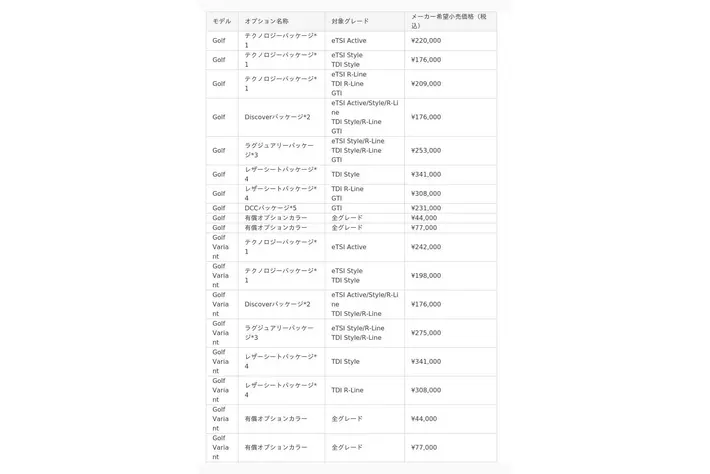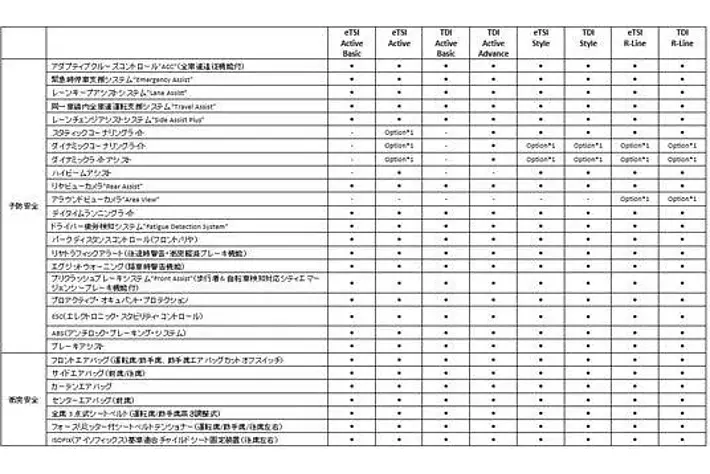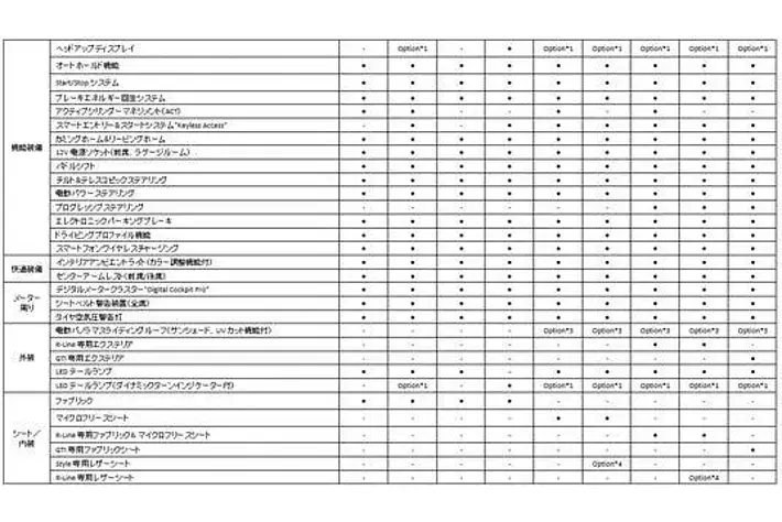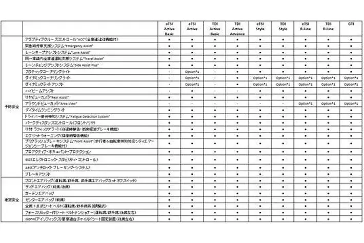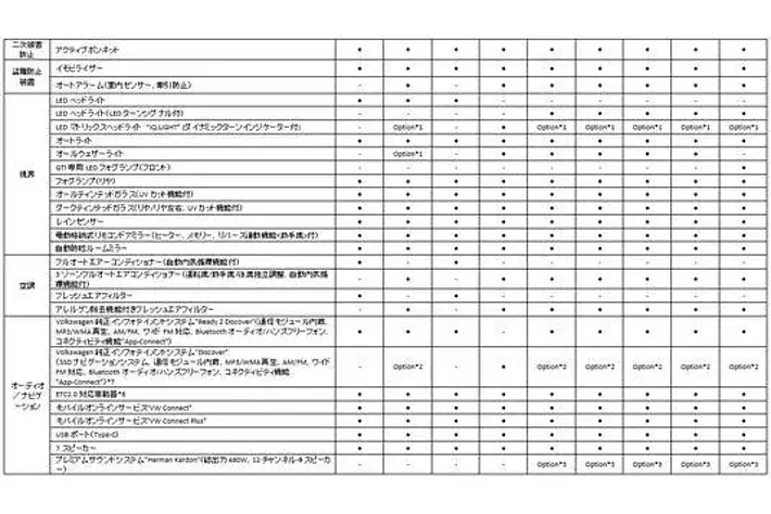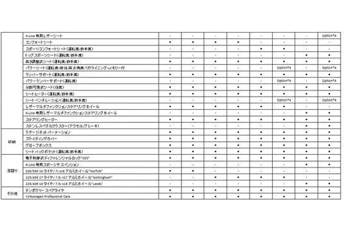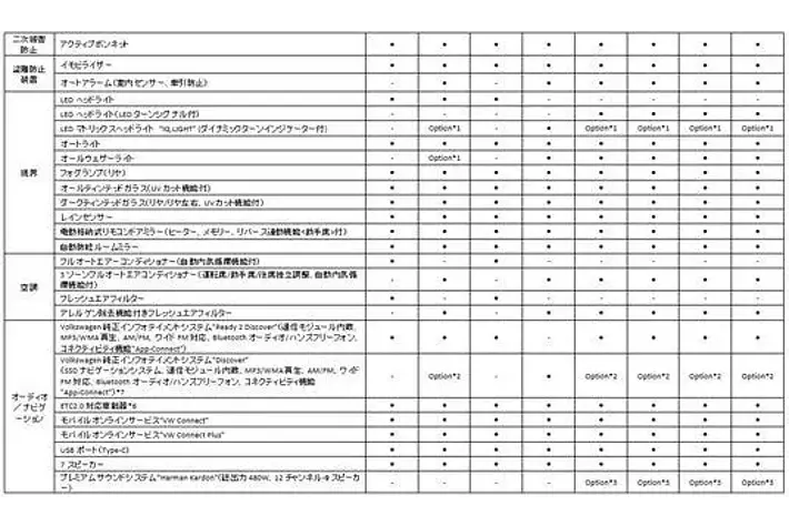 *3:ラグジュアリーパッケージ(*1、*2、*4とセットオプション。GTIではさらに*5とセットオプション)