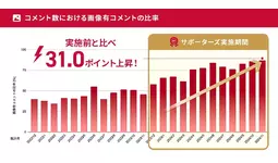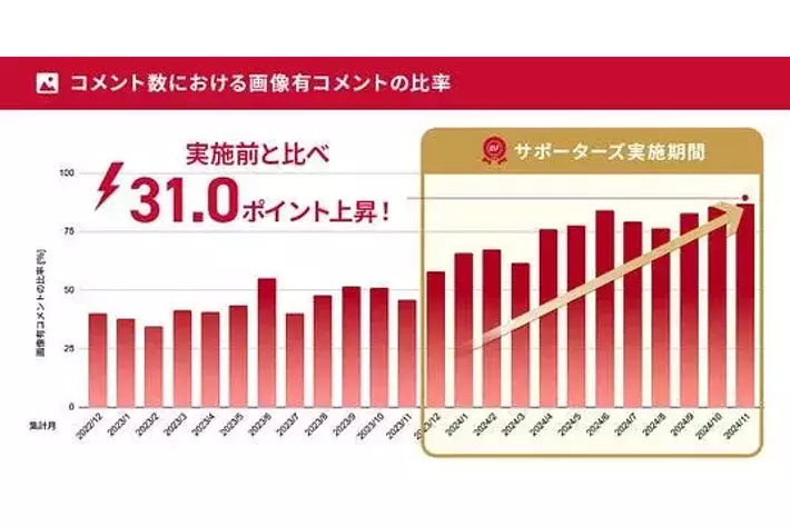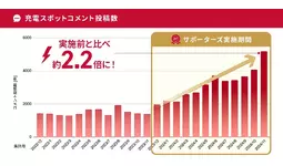 2024年11月末時点での登録者数は2,107名に達し、多くのEVサポーターによる積極的な参加が見られました。また、取り組み前(2022年12月から2023年11月)と取り組み後(2023年12月から2024年11月)では、EV充電エネチェンジアプリへのコメント投稿数の月間平均は1,472件から3,183件と約2.2倍増加し、充電器の設置状況がわかる画像ありのコメント投稿の比率は、44.1%から75.1%と31.0ポイント上昇しました。