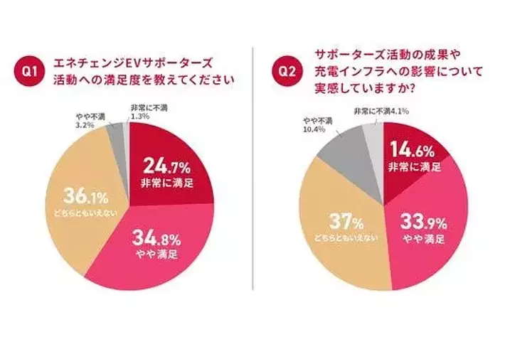 エネチェンジEVサポーターズに実施したアンケート調査*3では、参加者の約60%がプログラムに「満足」と回答。第二期への参加意欲も90%以上にのぼりました。また、約50%の参加者が活動の成果や充電インフラの整備への影響を実感しており、高評価を得られました。