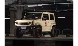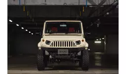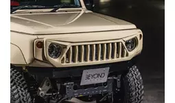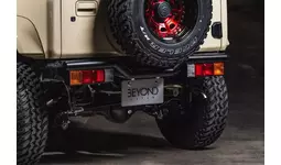 ラングラーのバッドフェイスグリルを彷彿とさせる「フェイスグリルソルジャー」と、シンプルな「バンパーレスエプロン」を組み合わせたスタイルは、ジムニーに新たな個性を与えます。