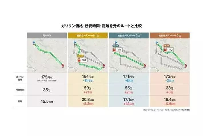 『カーナビタイム』「格安ガソリンルート」検索機能を提供開始