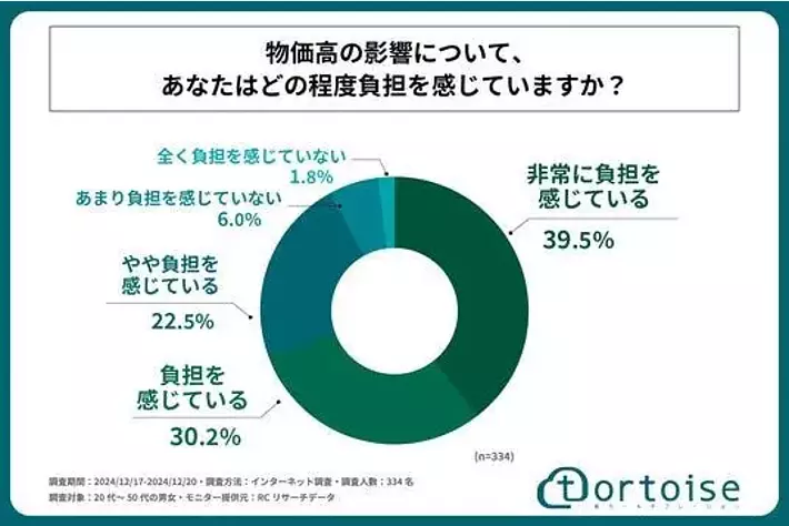 20代~50代の男女の9割以上が、近年の物価高の影響を負担に感じている