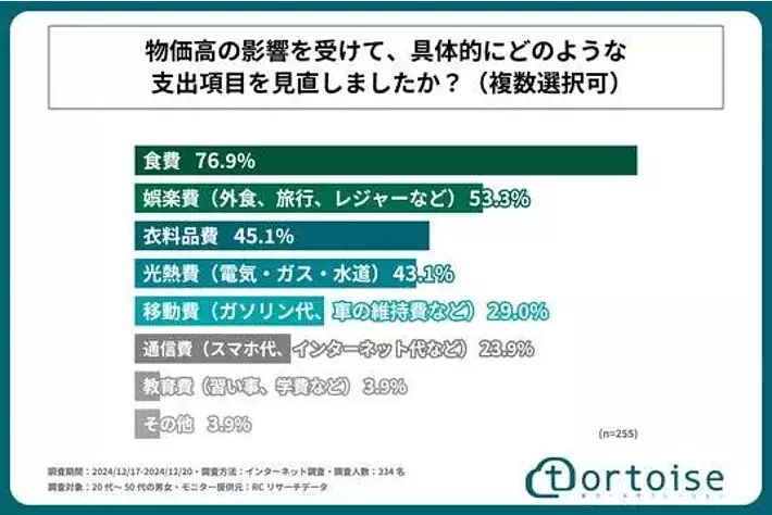 株式会社トータス(本社:神奈川県大和市、代表取締役:村野 公紀)が展開する、軽自動車専門の中古車・届出済未使用車販売店「tortoise(トータス)」は、20代~50代の男女を対象に「物価高による消費行動の変化」に関する調査を実施しました。