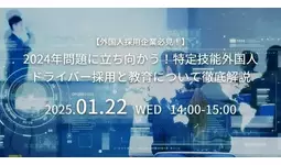 代表取締役社長:小西 悠太、以下:明光キャリアパートナーズ)は、2025年1月22日(水) 14:00よりオンラインセミナー『2024年問題に立ち向かう!特定技能外国人ドライバー採用と教育について徹底解説』を共同開催いたします。