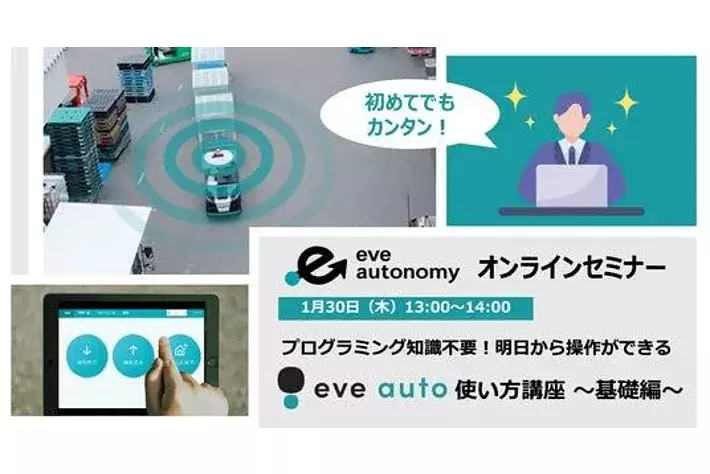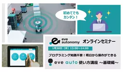 株式会社eve autonomy(イブ・オートノミー、静岡県磐田市、代表取締役CEO:星野 亮介、以下「eve autonomy」)は、2025年1月30日(木)に、自社開催による無料オンラインセミナー「プログラミング知識不要!明日から操作ができるeve auto使い方講座 ~基礎編~」を行います。