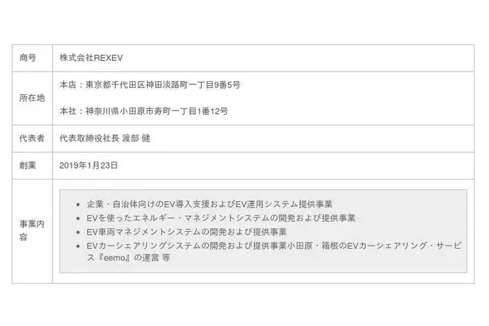電気自動車(以下、「EV」)を使ったカーシェアリングならびにエネルギーマネジメント※1 に取り組む株式会社 REXEV(本店:東京都千代田区、代表取締役社長:渡部健、 以下「REXEV」)は、東京都が実施する「ゼロエミッション東京の実現に向けた技術開発支援事業」にEV蓄電池アグリケーションによる大規模VPP事業の実施で応募し、採択されましたのでお知らせいたします。
