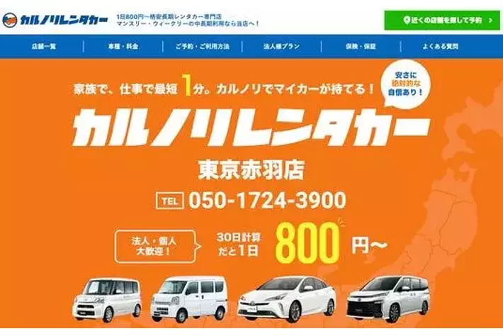 全国で24店舗を運営するレンタカー専門会社、カルノリレンタカーが東京初進出『東京赤羽店』を1月10日にオープン