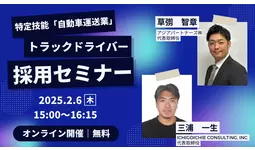 外国人トラックドライバーの採用を検討している物流・運送業界の皆様へ。本セミナーでは、特定技能「自動車運送業」における外国人ドライバーの育成から採用まで、成功の秘訣を解説します。